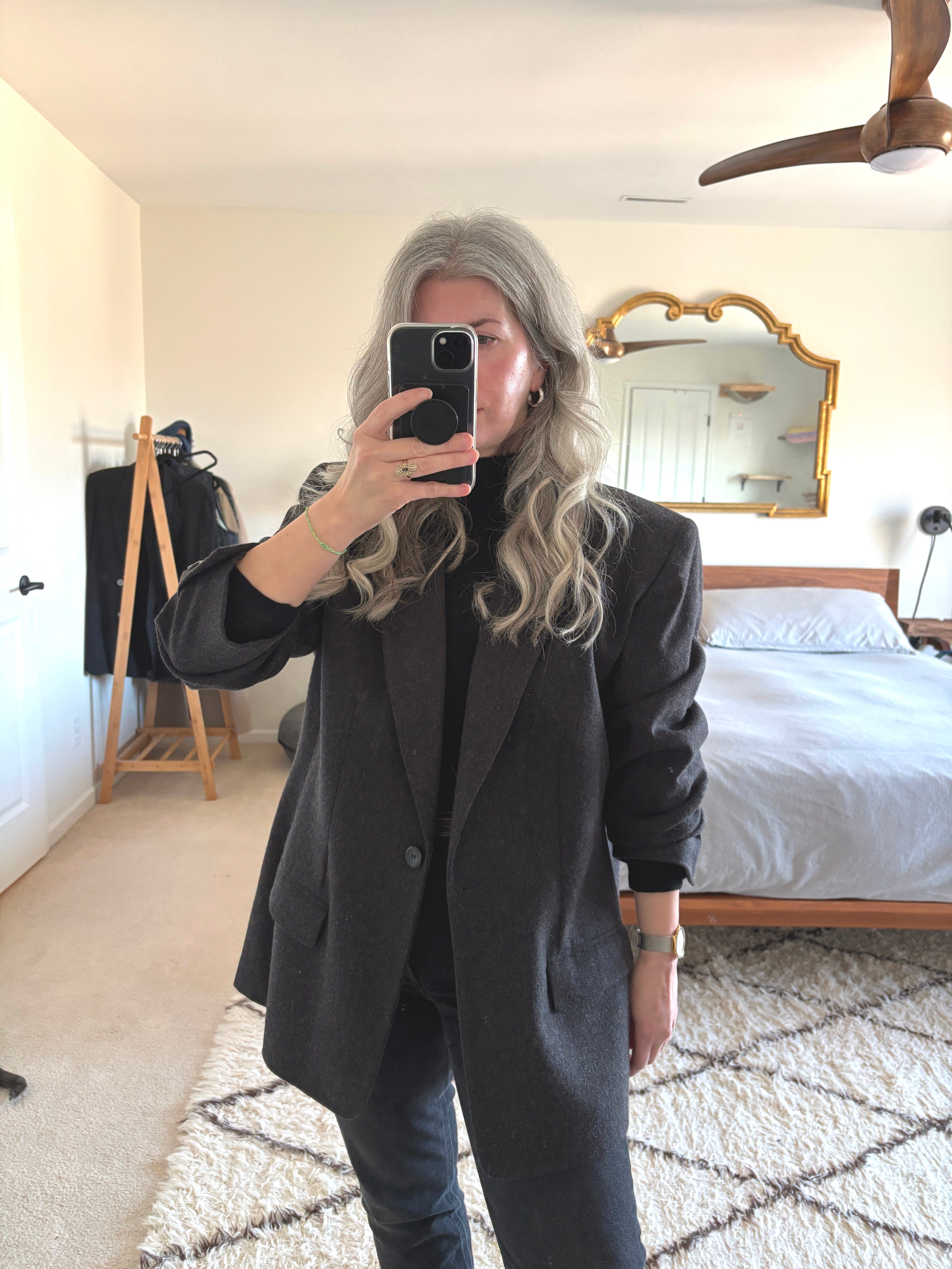 It always amazes me how low maintenance my hair is now that I have transitioned to silver. I used to dye my roots at least once a month and spend at least $100 anytime I went to the salon. Now I spend $55 every 3-4 months to get the ends cleaned up. Honestly, the best decision I ever made, and not just financially - there was quite a bit of growing out pain throughout the process but the end result is so worth it!