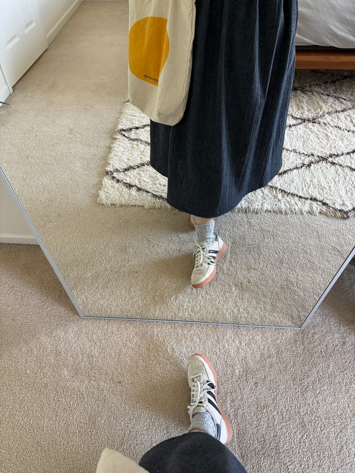 I briefly questioned if wearing these socks and sneakers with this dress was childish before I realized how silly that sounded - I like how it looks and that’s all that matters!