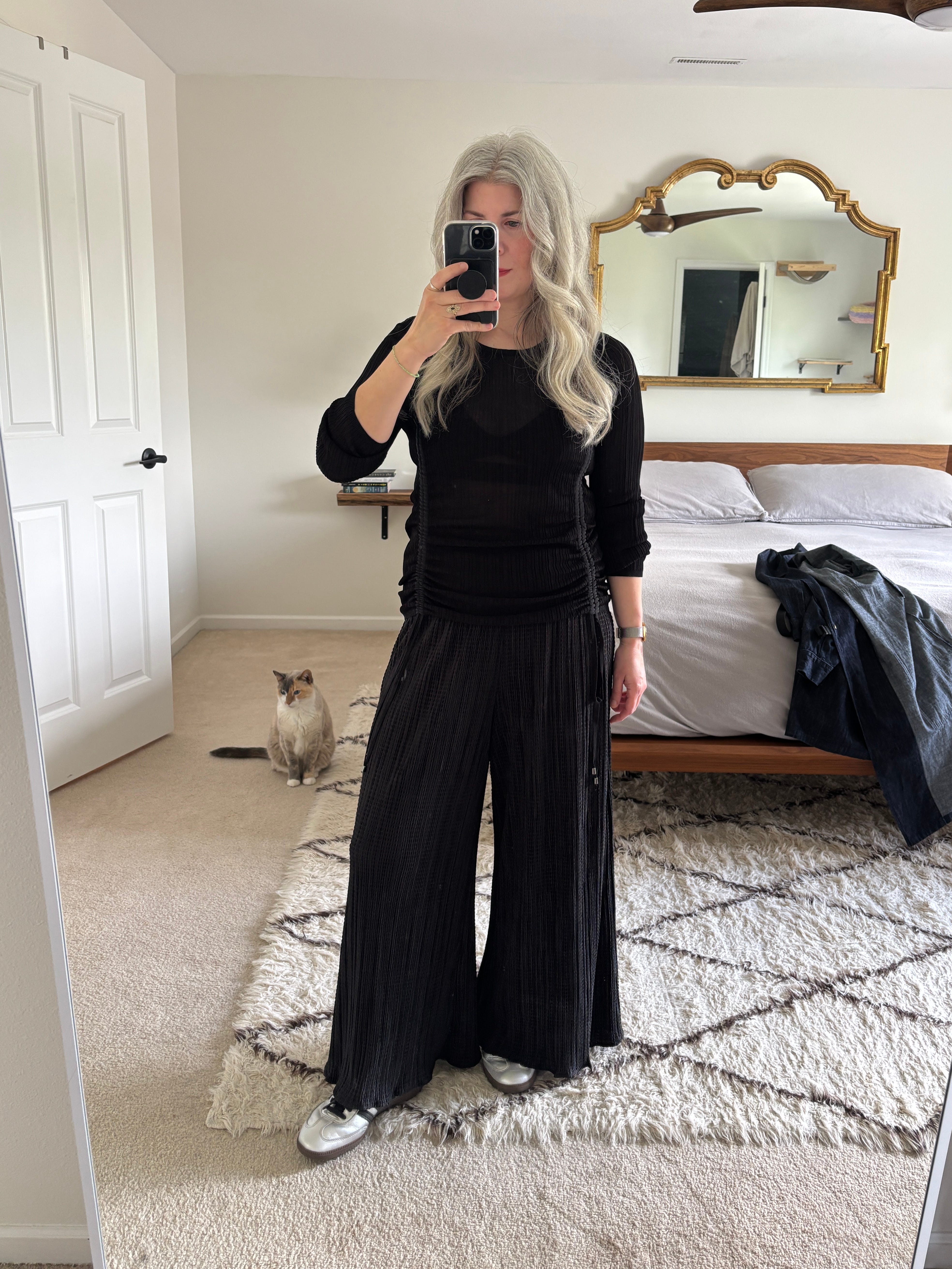 I added my silver sneakers as a way to make the outfit a little more interesting, even if the only time I went outside was to take the dog out or to do school pickup!