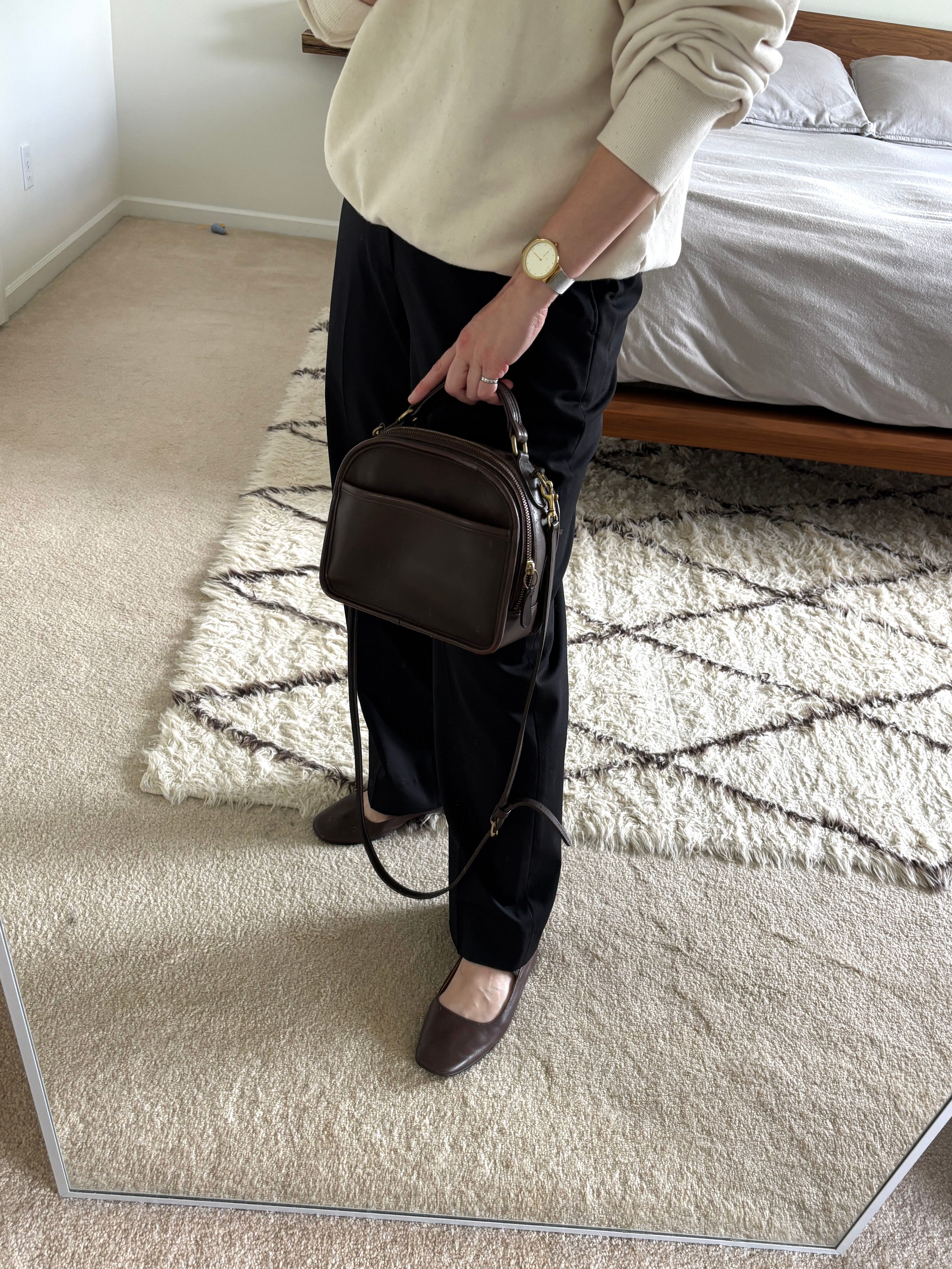 For the final touch, I added my brown vintage Coach bag, which I feel like I’ve been wearing more and more since I got these shoes.