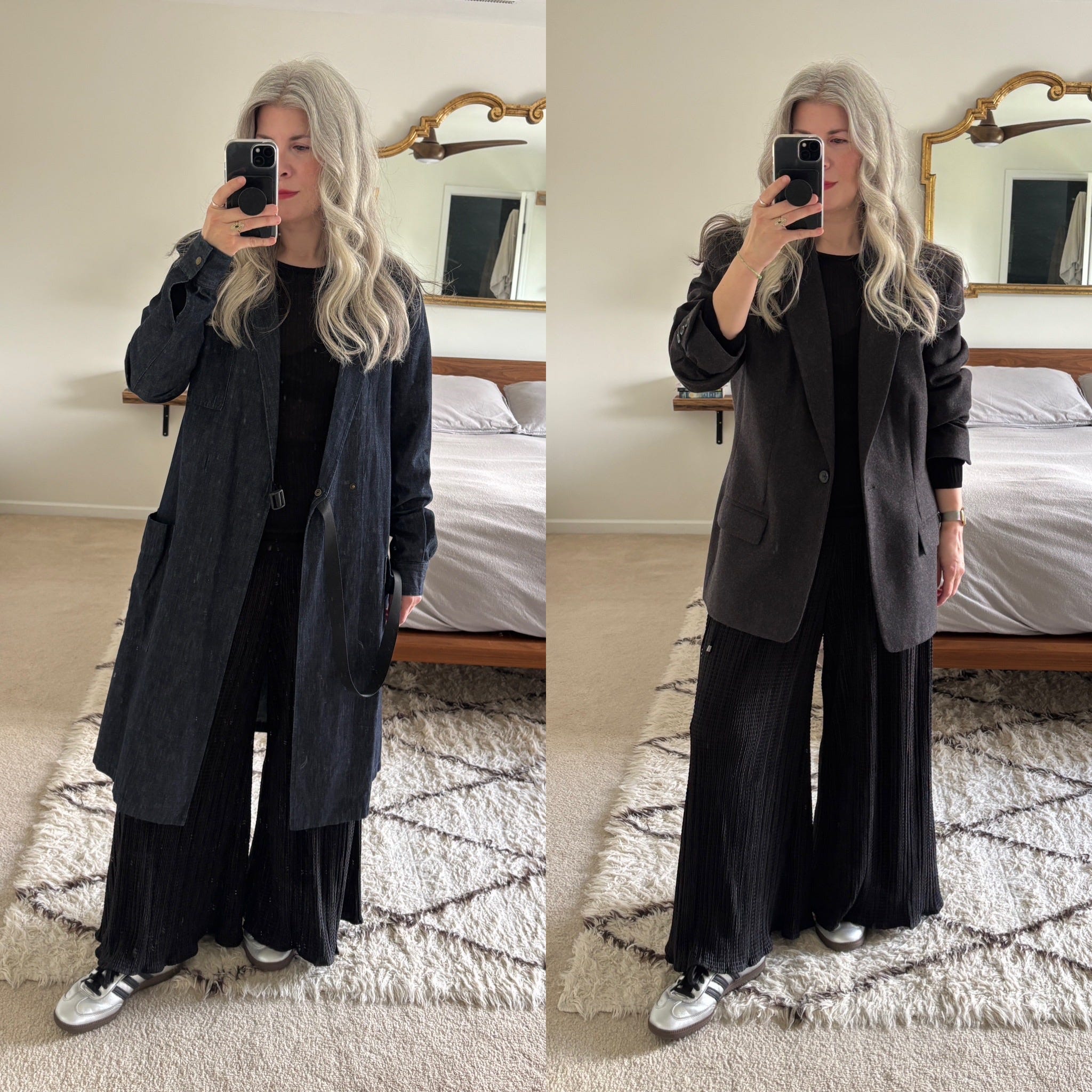Not wanting to change the other elements of the outfit, I tried my oversized wool blazer and I really liked how it looked with the other pieces, so that’s what I went with. It almost felt like I was wearing sweats under the blazer!