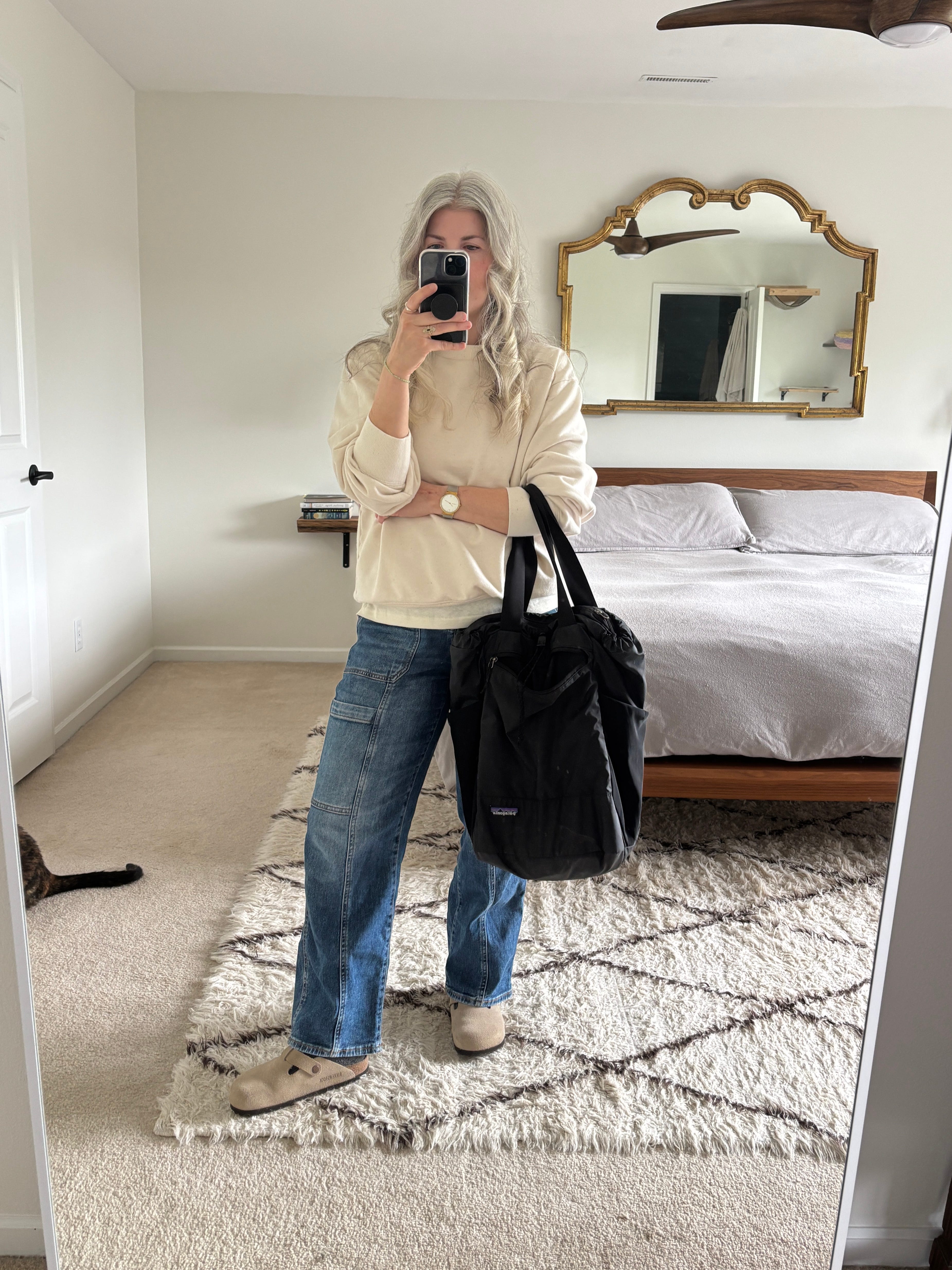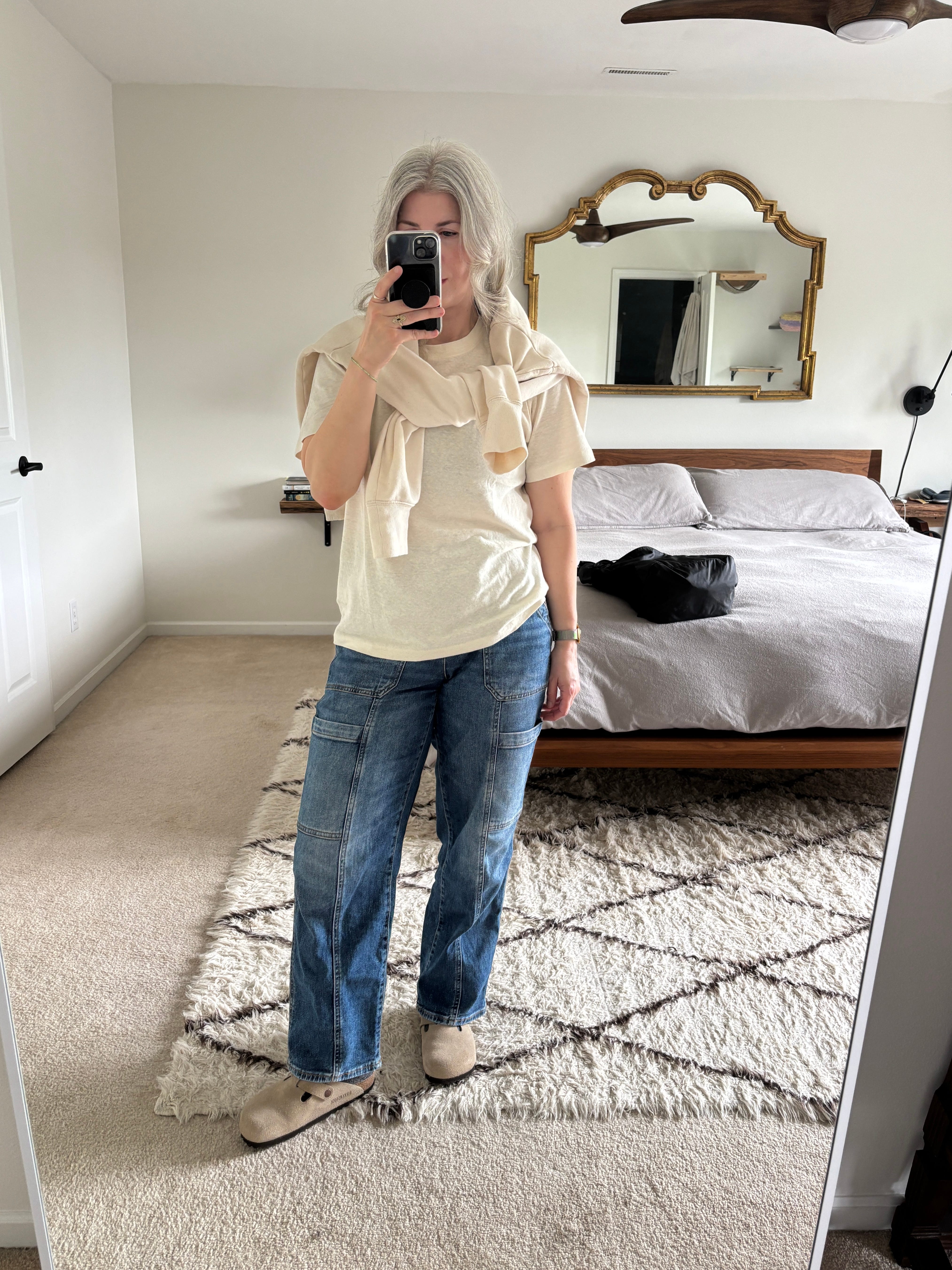 I layered a similarly colored t-shirt under the sweatshirt in case I got too warm (I didn’t). I’m surprised by how much I’m enjoying a little bit of cream in my wardrobe!
